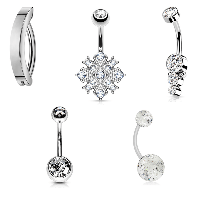 - Material : 316L Surgical Steel, Glitter belly bar is Bioflex